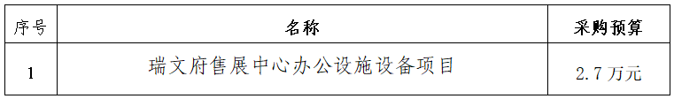根據(jù)《衢州市國有企業(yè)采購管理辦法(試行)》規(guī)定,以公開詢價方式對瑞文府售展中心辦公設(shè)施設(shè)備項目進行采購,歡迎合格的供應商參加。
