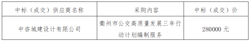三、標項名稱:衢州市公交高質(zhì)量發(fā)展三年行動計劃編制服務(wù)采購項目