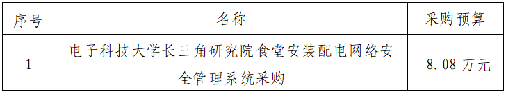 一、項目名稱:電子科技大學長三角研究院食堂安裝配電網(wǎng)絡安全管理系統(tǒng)采購