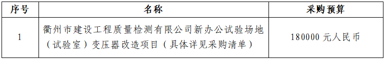 一、項(xiàng)目名稱:衢州市建設(shè)工程質(zhì)量檢測(cè)有限公司新辦公試驗(yàn)場(chǎng)地(試驗(yàn)室)變壓器改造項(xiàng)目