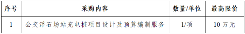 一、采購項目名稱:公交浮石場站充電樁項目設(shè)計及預算編制服務