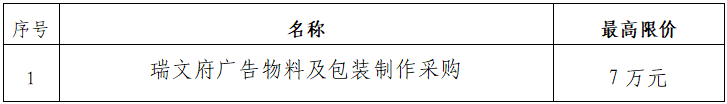 根據(jù)《衢州市市屬國有企業(yè)采購管理辦法(試行)》規(guī)定,以詢價方式對瑞文府廣告物料及包裝制作項(xiàng)目進(jìn)行采購,歡迎合格的供應(yīng)商參加。
