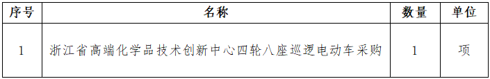 一、采購項目名稱:浙江省高端化學(xué)品技術(shù)創(chuàng)新中心四輪八座巡邏電動車采購項目