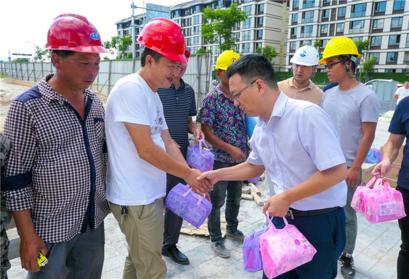 8月1日下午,集團(tuán)副總經(jīng)理葉建國(guó)及相關(guān)部門(mén)負(fù)責(zé)人一行前往物流大道西延工程、市綜合客運(yùn)樞紐等施工現(xiàn)場(chǎng),慰問(wèn)堅(jiān)守在一線的建筑工人,將毛巾、藿香正氣水、風(fēng)油精、洗發(fā)水等防暑降溫用品發(fā)放到現(xiàn)場(chǎng)作業(yè)人員手中。在各施工現(xiàn)場(chǎng),慰問(wèn)組一行督促施工企業(yè)要落實(shí)防暑降溫措施,改善作業(yè)環(huán)境,合理安排施工人員作息時(shí)間,確保夏季施工安全。