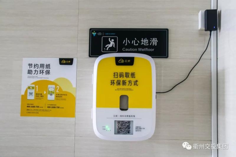 公共衛(wèi)生間內(nèi)設(shè)置了自助取紙機(jī),只要使用手機(jī)微信掃描二維碼關(guān)注微信公眾號(hào)后,便可免費(fèi)獲取紙巾。
