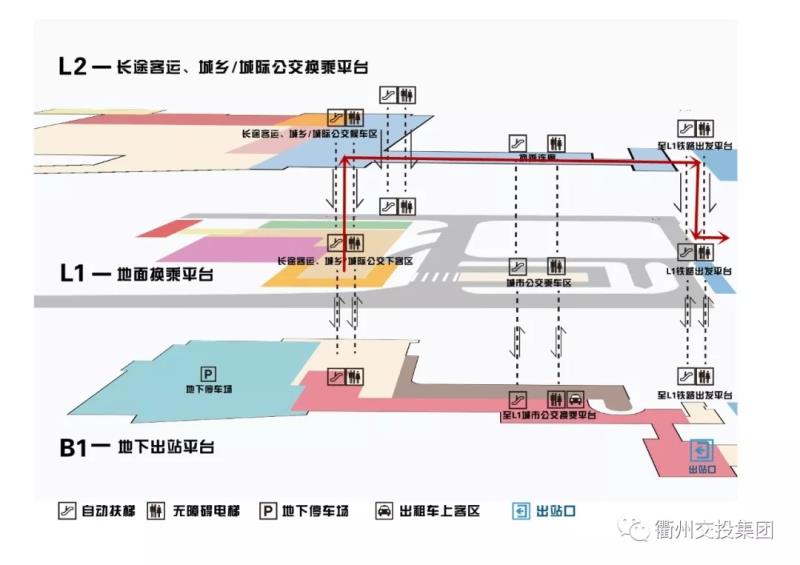 抵達(dá)地面一層城鄉(xiāng)/城際公交下客區(qū)——乘坐自動(dòng)扶梯或無(wú)障礙電梯前往二樓——右轉(zhuǎn)后由西向東步行通過換乘連廊——抵達(dá)盡頭后乘坐自動(dòng)扶梯或無(wú)障礙電梯向下——右轉(zhuǎn)至鐵路出發(fā)平臺(tái)。