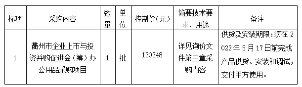 參照《衢州市國資委關(guān)于印發(fā)<衢州市國有企業(yè)采購管理辦法(試行)>的通知》(衢國資發(fā)[2020]36號(hào))、《中華人民共和國政府采購法》、《政府采購貨物和服務(wù)招標(biāo)投標(biāo)管理辦法》等規(guī)定,衢州市智信工程咨詢有限公司受衢州市智慧置業(yè)有限公司的委托,就衢州市企業(yè)上市與投資并購促進(jìn)會(huì)(籌)辦公用品采購項(xiàng)目進(jìn)行詢價(jià),本項(xiàng)目為非依法必招項(xiàng)目,現(xiàn)請(qǐng)合格供應(yīng)商參加投標(biāo)。