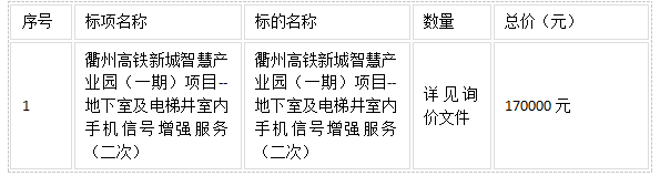 二、項目名稱:衢州高鐵新城智慧產(chǎn)業(yè)園(一期)項目--地下室及電梯井室內(nèi)手機(jī)信號增強(qiáng)服務(wù)(二次)