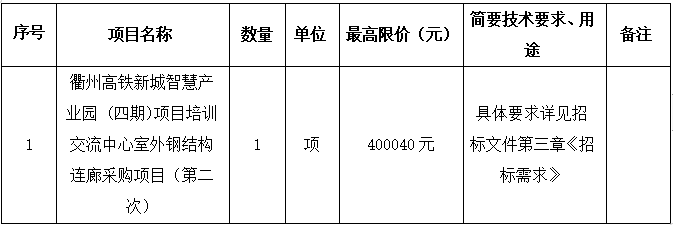 項(xiàng)目名稱:衢州高鐵新城智慧產(chǎn)業(yè)園 (四期)項(xiàng)目培訓(xùn)交流中心室外鋼結(jié)構(gòu)連廊采購項(xiàng)目(第二次)