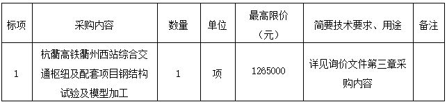 參照《衢州市國資委關(guān)于印發(fā)<衢州市國有企業(yè)采購管理辦法(試行)>的通知》(衢國資發(fā)[2020]36號)規(guī)定,浙江南方工程咨詢管理有限公司受衢州市交通樞紐建設(shè)發(fā)展有限公司的委托,就杭衢高鐵衢州西站綜合交通樞紐及配套項目鋼結(jié)構(gòu)試驗及模型加工進行詢價,本項目為非依法必招項目,現(xiàn)請合格供應(yīng)商參加投標(biāo)。
