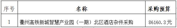 一、采購項(xiàng)目名稱:衢州高鐵新城智慧產(chǎn)業(yè)園(一期)北區(qū)酒店雜件采購。