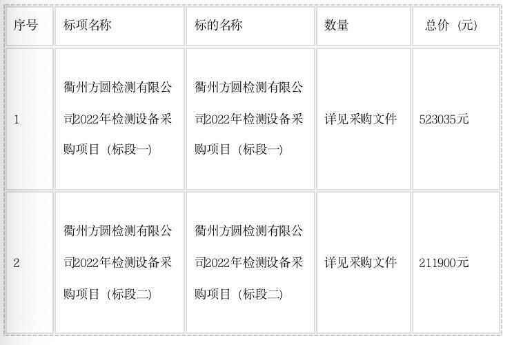 二、項目名稱:衢州方圓檢測有限公司2022年檢測設備采購項目