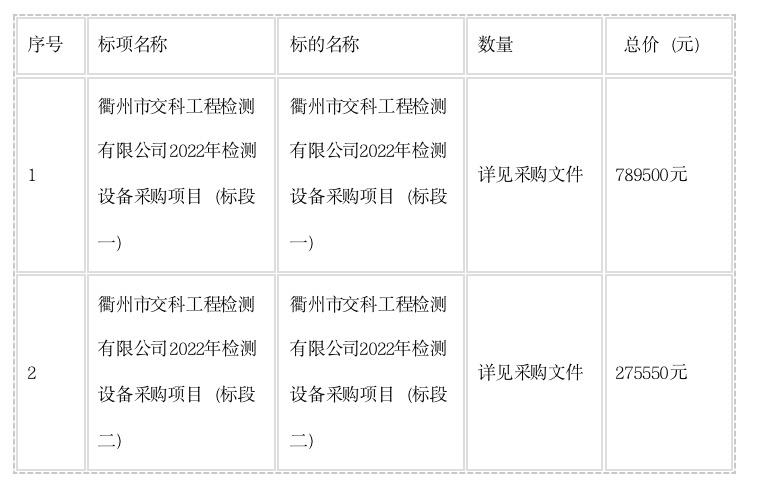 衢州市交科工程檢測有限公司2022年檢測設(shè)備采購項目中標(biāo)結(jié)果公告