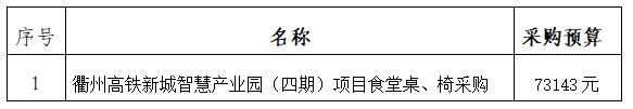 一、采購項目名稱:衢州高鐵新城智慧產(chǎn)業(yè)園(四期)項目食堂桌、椅采購。