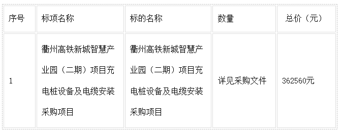 二、項(xiàng)目名稱:衢州高鐵新城智慧產(chǎn)業(yè)園(二期)項(xiàng)目充電樁設(shè)備及電纜安裝采購(gòu)項(xiàng)目