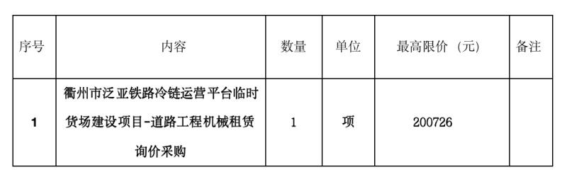二、項目名稱:衢州市泛亞鐵路冷鏈運營平臺臨時貨場建設(shè)項目-道路工程機(jī)械租賃詢價采購