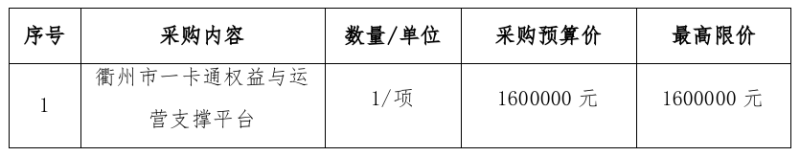 二、項(xiàng)目名稱:衢州市一卡通權(quán)益與運(yùn)營(yíng)支撐平臺(tái)項(xiàng)目