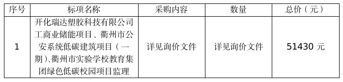 開化瑞達(dá)塑膠科技有限公司工商業(yè)儲(chǔ)能項(xiàng)目、衢州市公安系統(tǒng)低碳建筑項(xiàng)目(一期)、衢州市實(shí)驗(yàn)學(xué)校教育集團(tuán)綠色低碳校園項(xiàng)目監(jiān)理中標(biāo)結(jié)果公告(非政府采購(gòu))