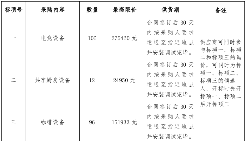 注:本項(xiàng)目的詢(xún)價(jià)文件須分標(biāo)項(xiàng)一、二、三分別制作。