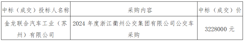 五、采購(gòu)內(nèi)容:2024年度浙江衢州公交集團(tuán)有限公司公交車(chē)采購(gòu)項(xiàng)目(具體詳見(jiàn)招標(biāo)文件)。