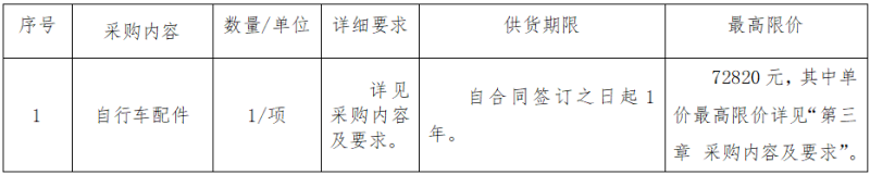 二、項目名稱:衢州通達公共自行車服務有限公司自行車配件采購項目