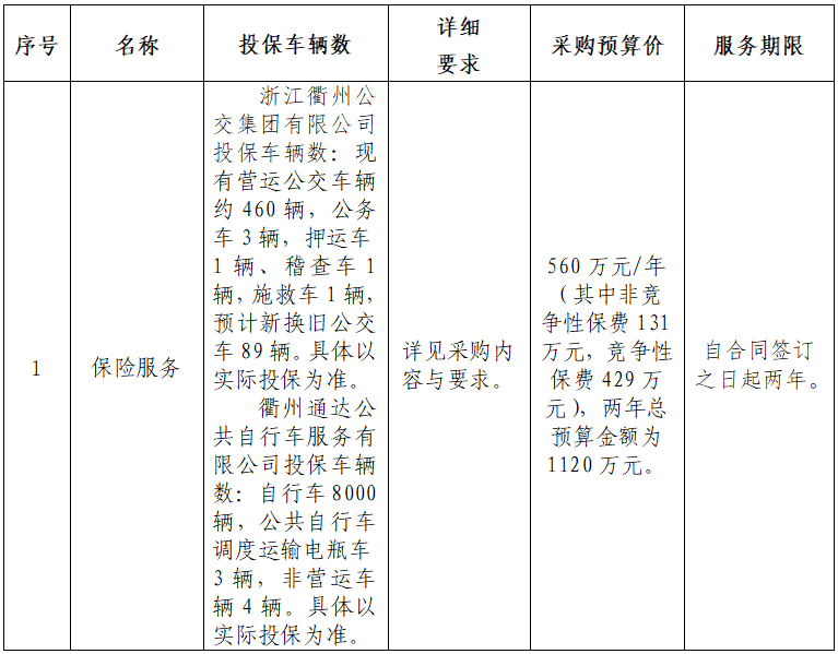 二、項(xiàng)目名稱:浙江衢州公交集團(tuán)有限公司車輛保險(xiǎn)服務(wù)采購項(xiàng)目