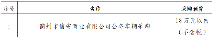 一、采購項目名稱:衢州市信安置業(yè)有限公司公務車輛采購項目
