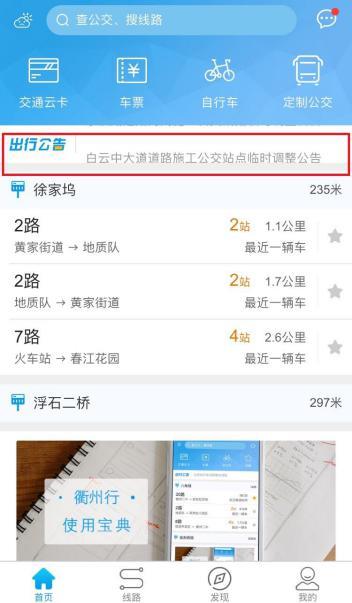 一、衢州行APP。在衢州行首頁出行公告欄中會滾動彈出查詢公交公司發(fā)布的相關(guān)公告(如下圖),市民可以根據(jù)各自的需求進行查詢;