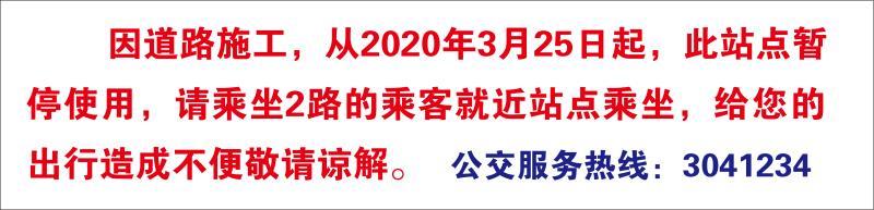二、公交車停靠站。關(guān)注站牌線張貼關(guān)于線路調(diào)整的溫馨提示(例如下圖)