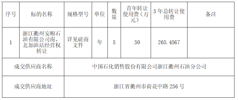 二、采購項目名稱:浙江衢州安順石油有限公司南、北加油站經(jīng)營權(quán)轉(zhuǎn)讓