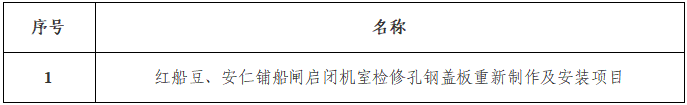 一、采購項(xiàng)目名稱:紅船豆、安仁鋪船閘啟閉機(jī)室檢修孔鋼蓋板重新制作及安裝項(xiàng)目
