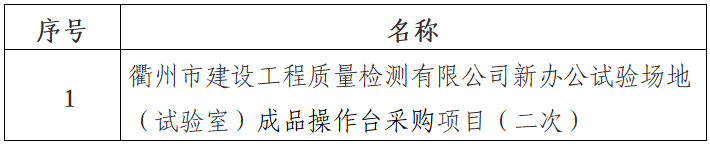 一、采購(gòu)項(xiàng)目名稱:衢州市建設(shè)工程質(zhì)量檢測(cè)有限公司新辦公試驗(yàn)場(chǎng)地(試驗(yàn)室)成品操作臺(tái)采購(gòu)項(xiàng)目(二次)