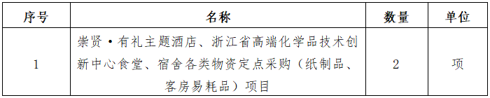 一、采購項目名稱:崇賢·有禮主題酒店、浙江省高端化學品技術創(chuàng)新中心食堂、宿舍各類物資定點采購(紙制品、客房易耗品)項目