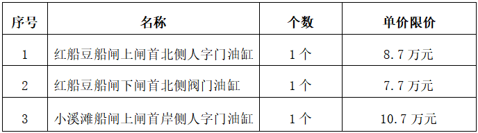 紅船豆船閘、小溪灘船閘故障液壓缸維修項目,需維修的故障液壓缸共3個,采購總預(yù)算價為人民幣27.1萬元。(具體單價限價詳見下表)