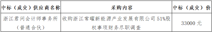 五、采購內(nèi)容:收購浙江常曜新能源產(chǎn)業(yè)發(fā)展有限公司51%股權(quán)事項財務(wù)盡職調(diào)查。
