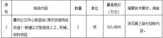 二、項目名稱:衢州公交中心樞紐站(原農(nóng)貿(mào)城場站改造)-新建公交樞紐站人工、機械、材料項目