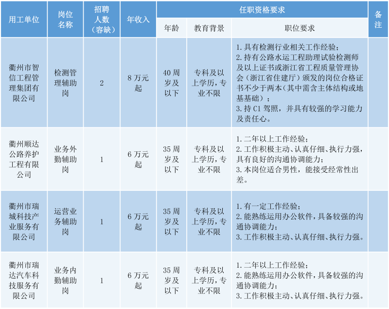 衢州衢通控股集團(tuán)有限公司因工作需要,面向社會(huì)公開招聘5名勞務(wù)派遣人員。具體事項(xiàng)公告如下:
