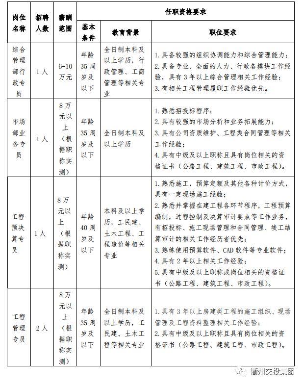 (一)衢州市交通投資集團有限公司招聘崗位與人數(shù)見下表: