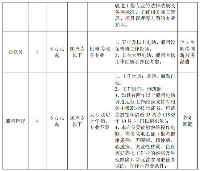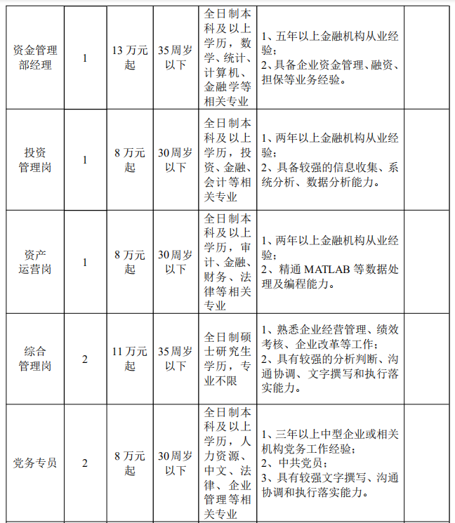 一、招聘崗位及條件