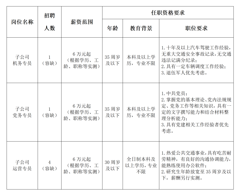 現(xiàn)因工作需要,委托衢州市慧城人才開發(fā)有限公司(以下簡稱慧城人才公司)面向社會公開招聘6名工作人員,具體工作單位統(tǒng)籌安排。具體招聘事項(xiàng)公告如下: