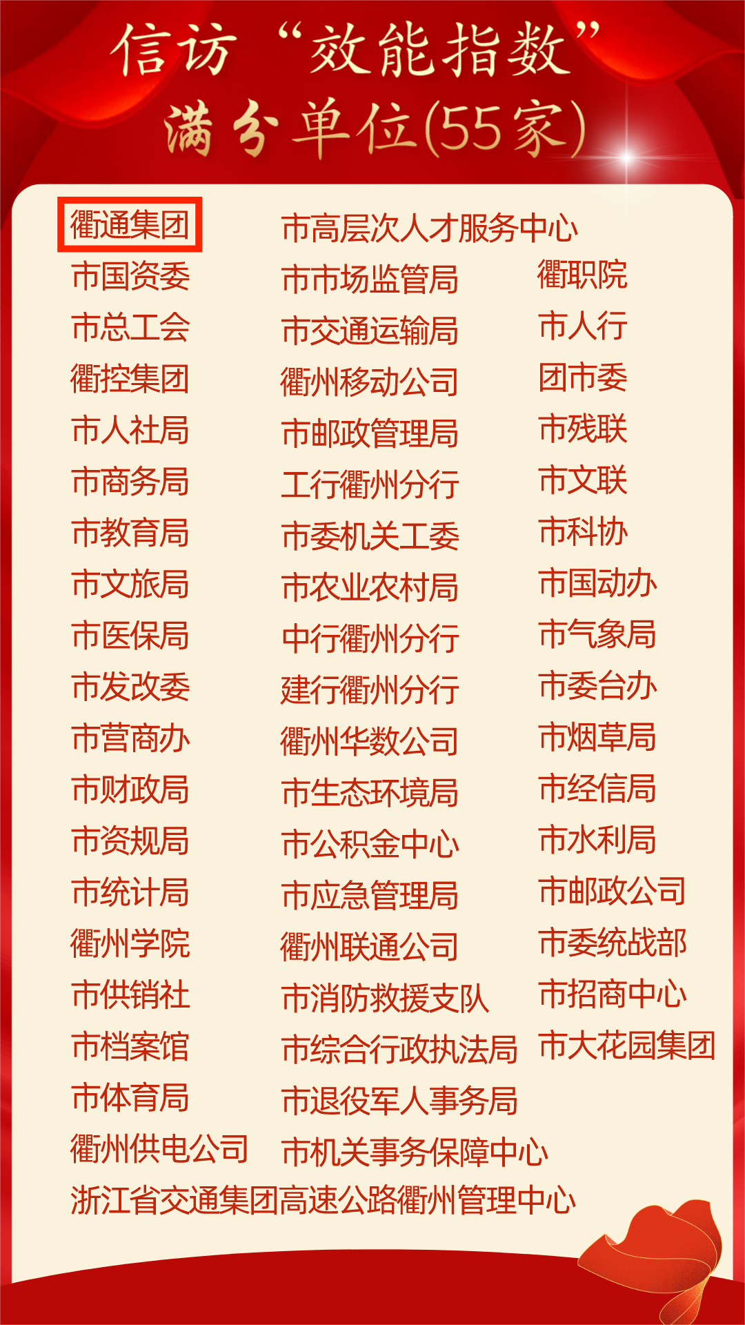 衢通集團獲評第四季度信訪“效能指數(shù)”滿分……